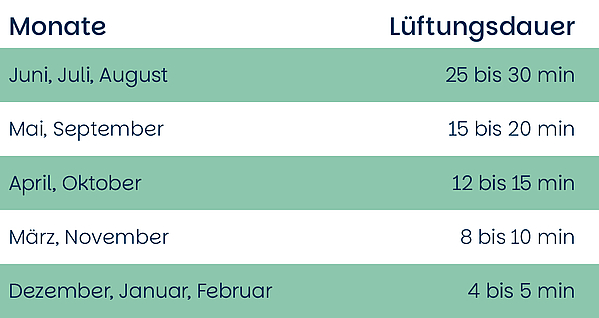 - Lüften Sie im Winter mindestens solange, bis der Beschlag am Fenster weg ist.
