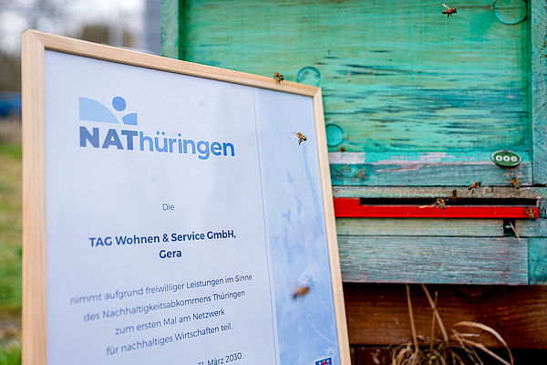 Bild 2: NAThüringen-Urkunde der TAG Wohnen für den Standort Gera. © nathüringen
