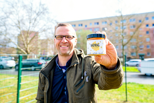 Auf der Wiese an der Weidenstraße in Gera-Lusan bewirtschaftet Imker Jens Grashof seit 2021 mehrere Bienenvölker. Das Areal hat ihm die TAG Wohnen bereitgestellt. Drei Völker liefern pro Jahr rund 180 Kilogramm „Honig aus Lusan“, den Grashof in der Landimkerei Silbergrund abfüllt. Die TAG Wohnen nutzt den Stadthonig zu besonderen Anlässen als Präsent und verweist damit zugleich auf die Bedeutung einer vielfältigen Stadtnatur.