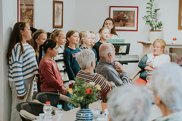 Das Fest startete um 13 Uhr mit einem gemütlichen Kaffeekränzchen. Anschließend folgte ein besonderes musikalisches Highlight: Die Viertklässler der nahegelegenen Grundschule trugen sechs Herbstlieder vor, die das Publikum sichtbar bewegten – nicht zuletzt, weil diese Klasse schon bei der Eröffnung des Sempers Nachbarschaftstreffs vor über zwei Jahren mitgewirkt hatte.